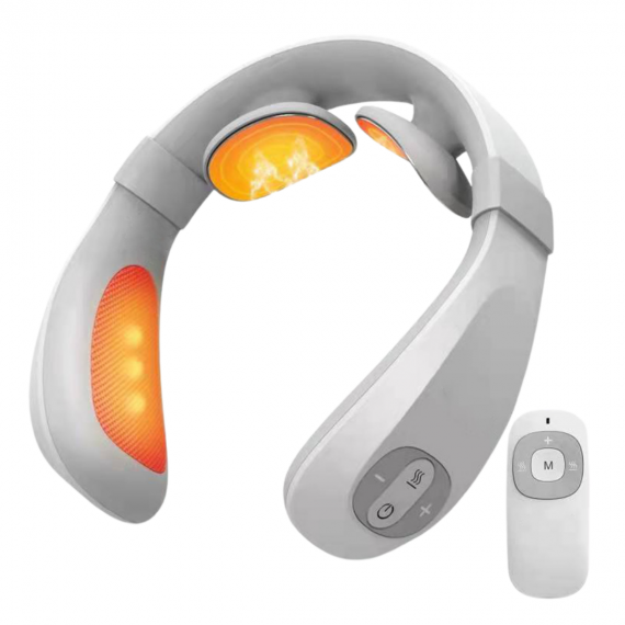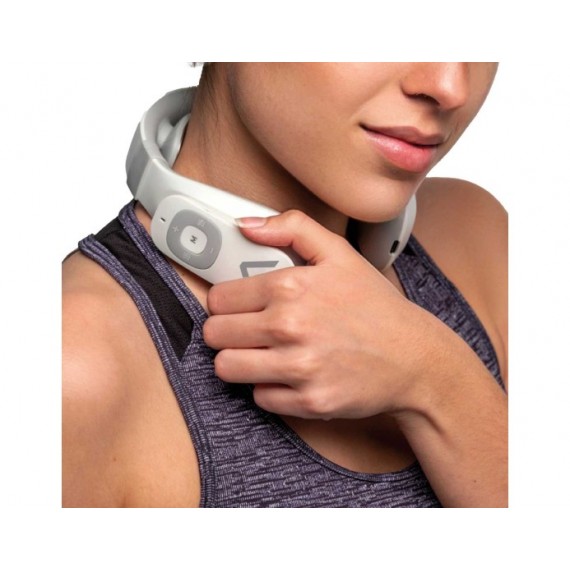 O Massageador de Pescoço inclui uma massagem por ondas combinada com termoterapia com efeito de calor e um laser profissional para o pescoço, região cervical e papada. "Laser Semicondutor (640-650 nm, 5 mW máx. e LED)". Esses sistemas de massagem combinados fortalecem e relaxam os músculos, aliviando a tensão, rigidez ou cãibras musculares, proporcionando uma sensação agradável e revitalizante.